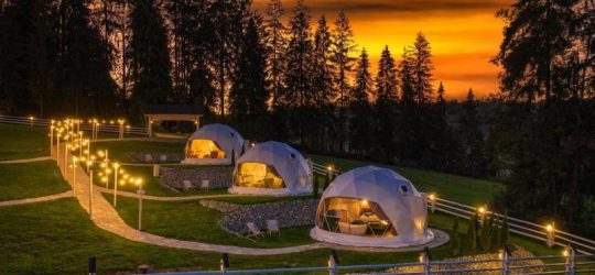 Для любителів гірської атмосфери і оригінальних будиночків, обов’язково варто відвідати Mountain Glamp. Це п’ять глэмпінг-куполів, розташовані на величезній поляні поряд з деревами і природою. З кожного купола відкривається прекрасний вид на близькі гори, тому можете бути впевнені, що знайшли ідеальне місце для проведення вихідних в горах.